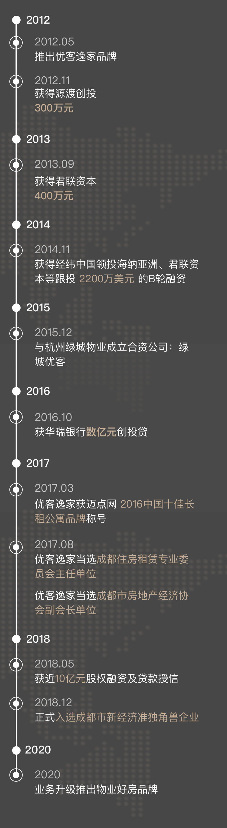 UOKO集团以“引领美好生活方式”为愿景,于2012年推出优客逸家品牌,将住房租赁运营的互联网模式与物联网技术紧密结合。优客逸家以“产品标准化、服务品牌化、居住社交化”为品牌公寓发展理念,助力和谐社区建设,引领行业标准,推动国内住房租赁行业的快速发展。